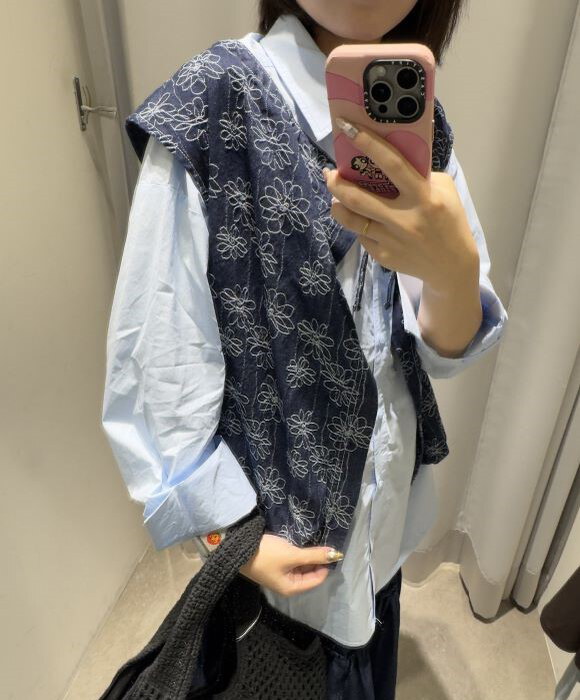 丹寧氣球下擺綁帶背心