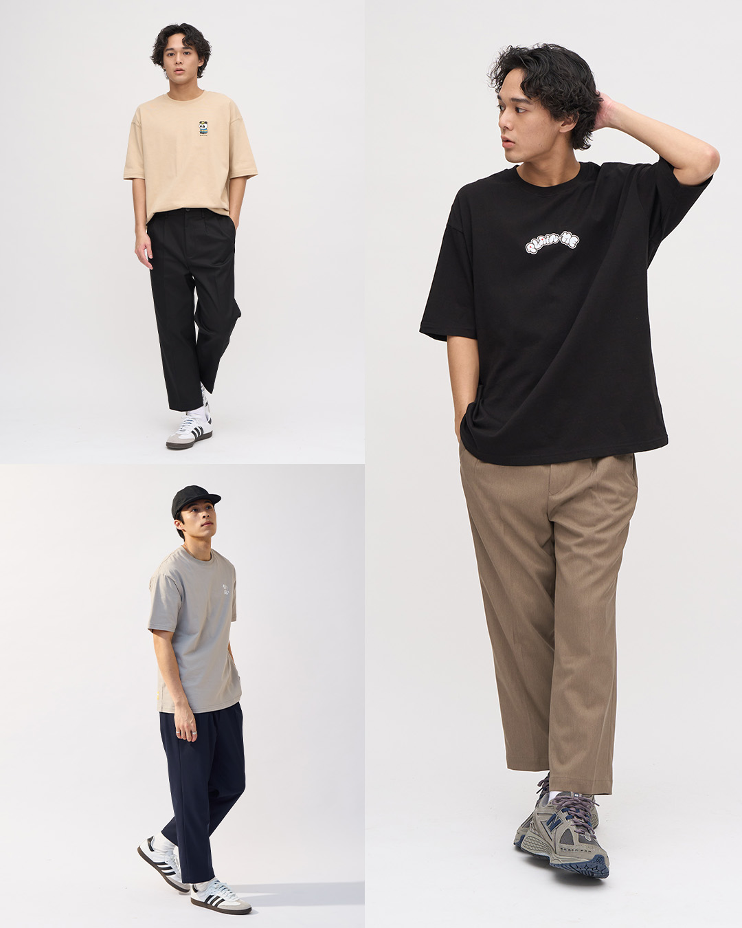 - City Boy 風格:搭配 小P社長二代涼感短袖TEE,下擺自然垂放,露出錐形褲管,創造上寬下窄的輪廓。