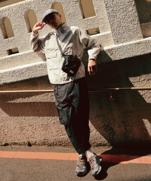 風格亮點:條紋TEE呼應外套的簡約設計,微寬鬆的褲子與機能外套組合,適合戶外活動且不悶熱。