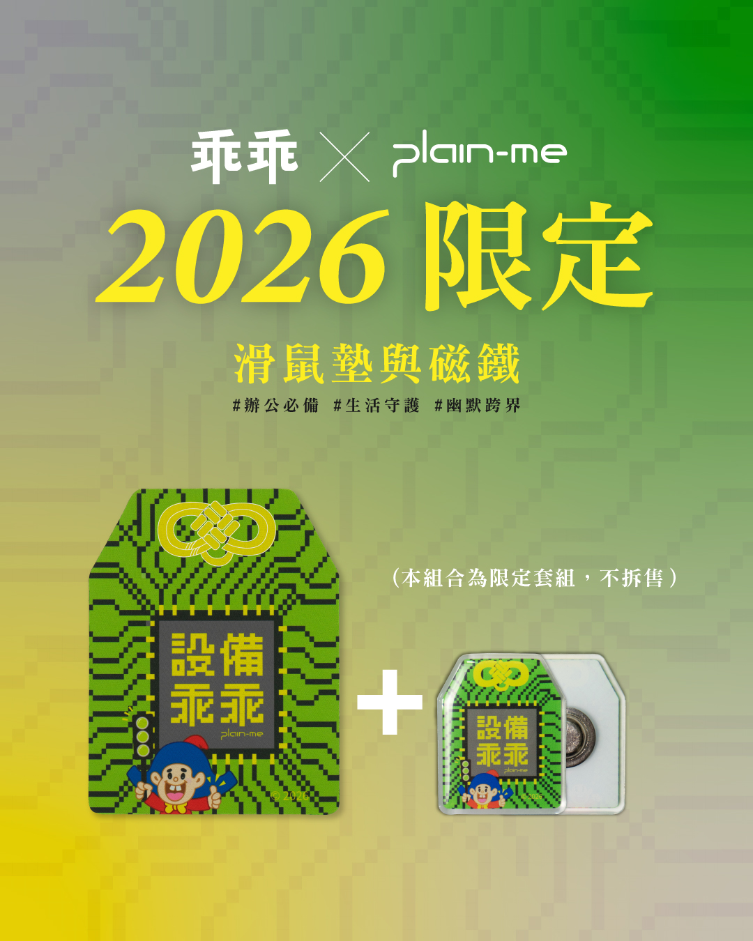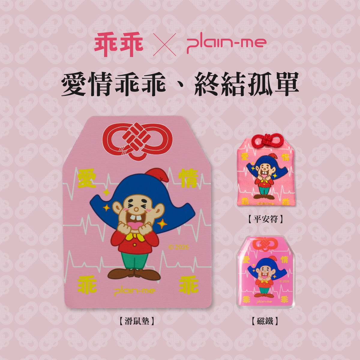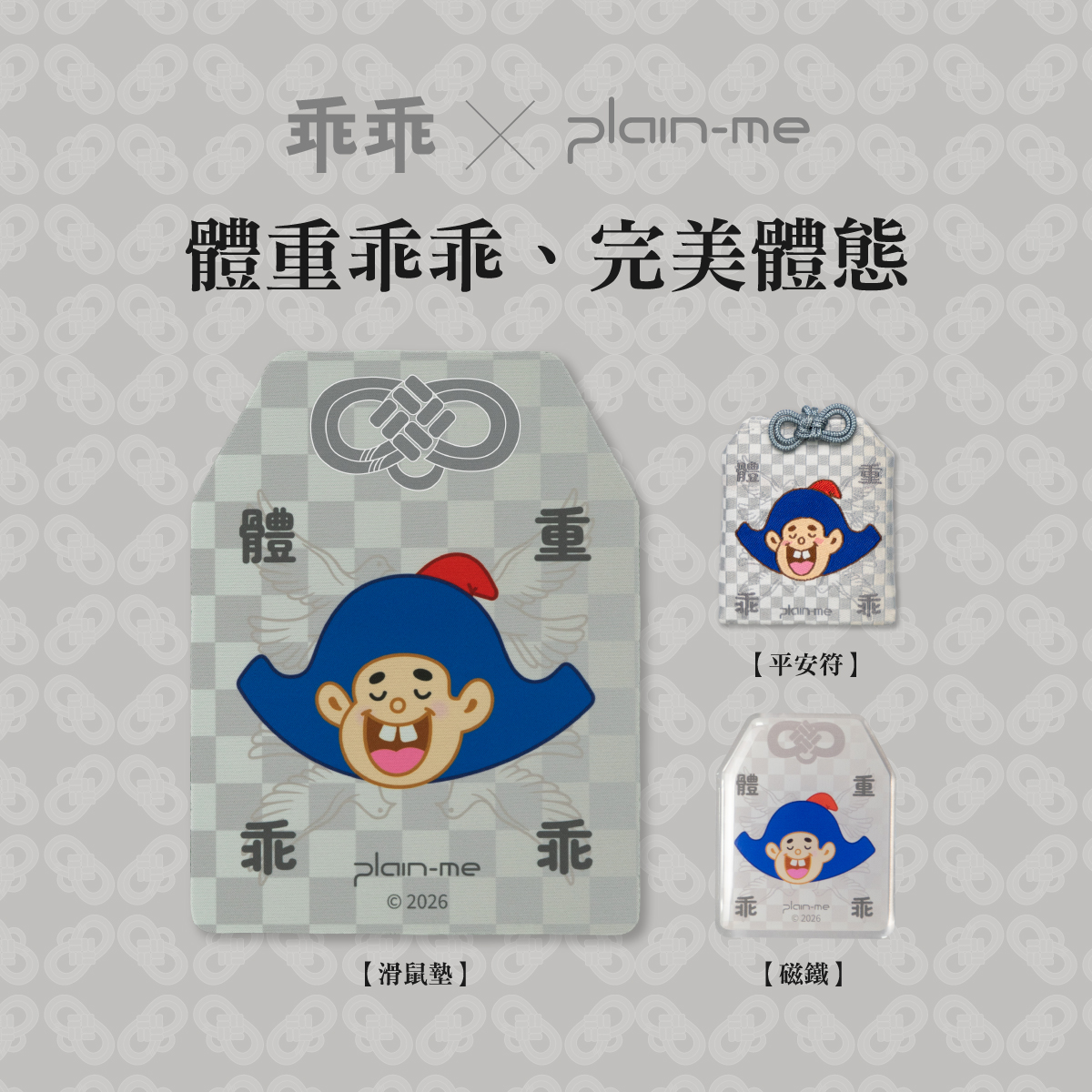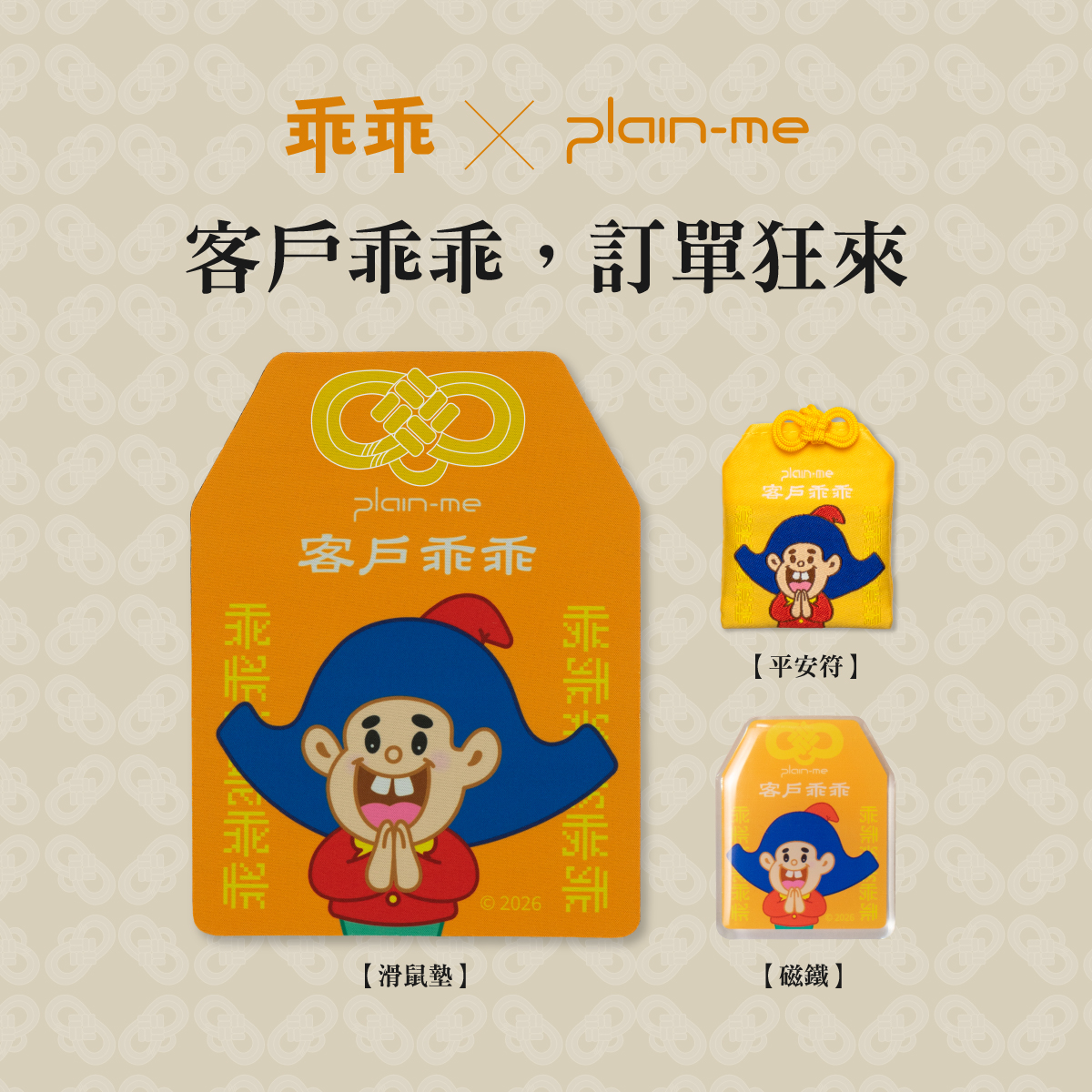 今年,我們不再只專注於單一的綠色守護,而是將這份傳承三年的默契,轉化為八大生存議題。從保佑提案必過的「客戶」、守護財富的「股市」,到關乎幸福感的「愛情」與「寵物」,plain-me 將乖乖神力具象化為平安符、磁鐵、滑鼠墊與原子筆。