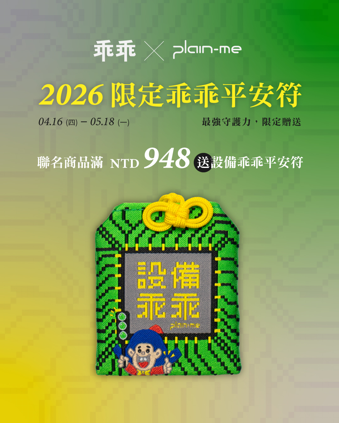 .預購指定商品消費滿 NTD 948 就送設備乖乖平安符