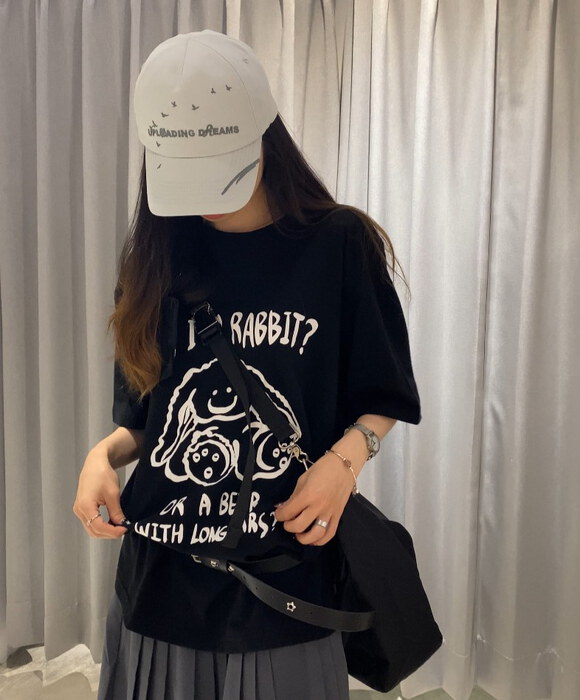 用可愛圖T做亮點,搭配西料百褶裙,讓整體呈現舒服的黑灰調~