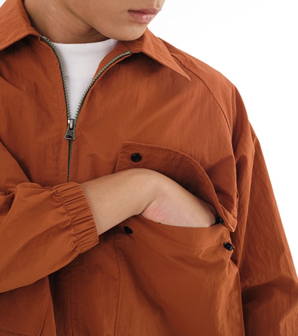 - 輕潑水材質,起皺加工的尼龍素材,增添布面質感,秋季微涼的擋風小外套。