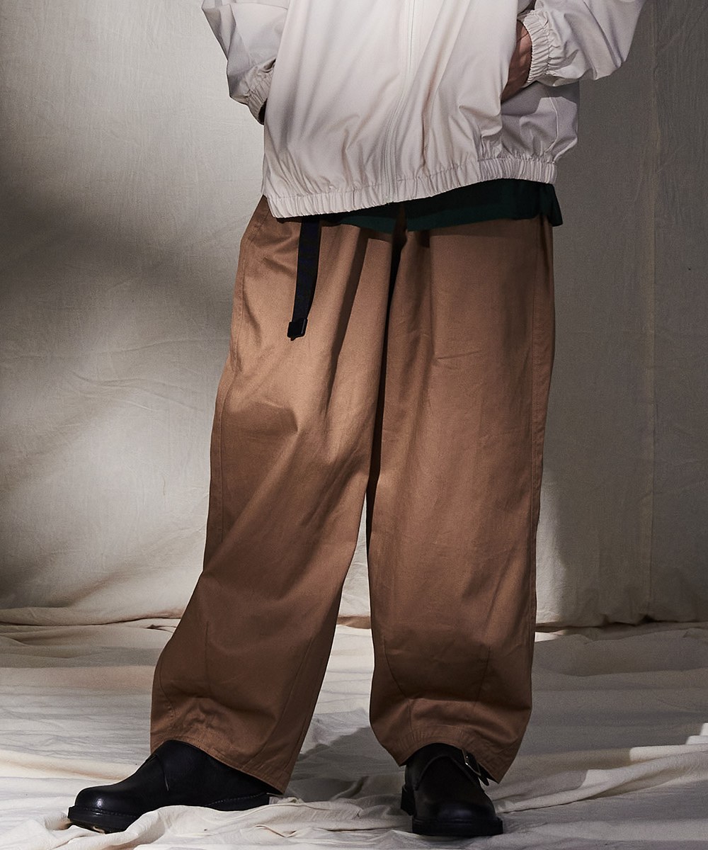 - 經典繭型寬褲,搭配下方打褶設計,增加視覺立體感。