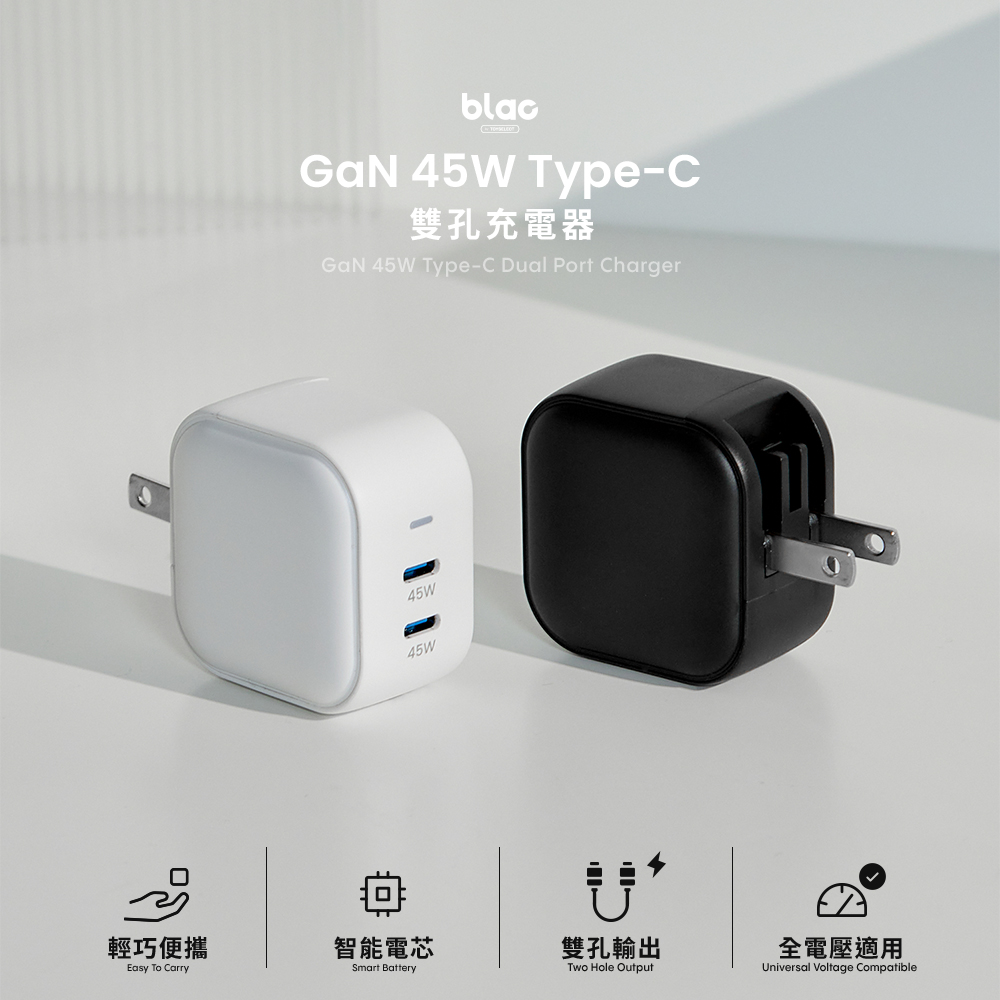 - 雙插孔|Type-C雙輸出,一次充兩台