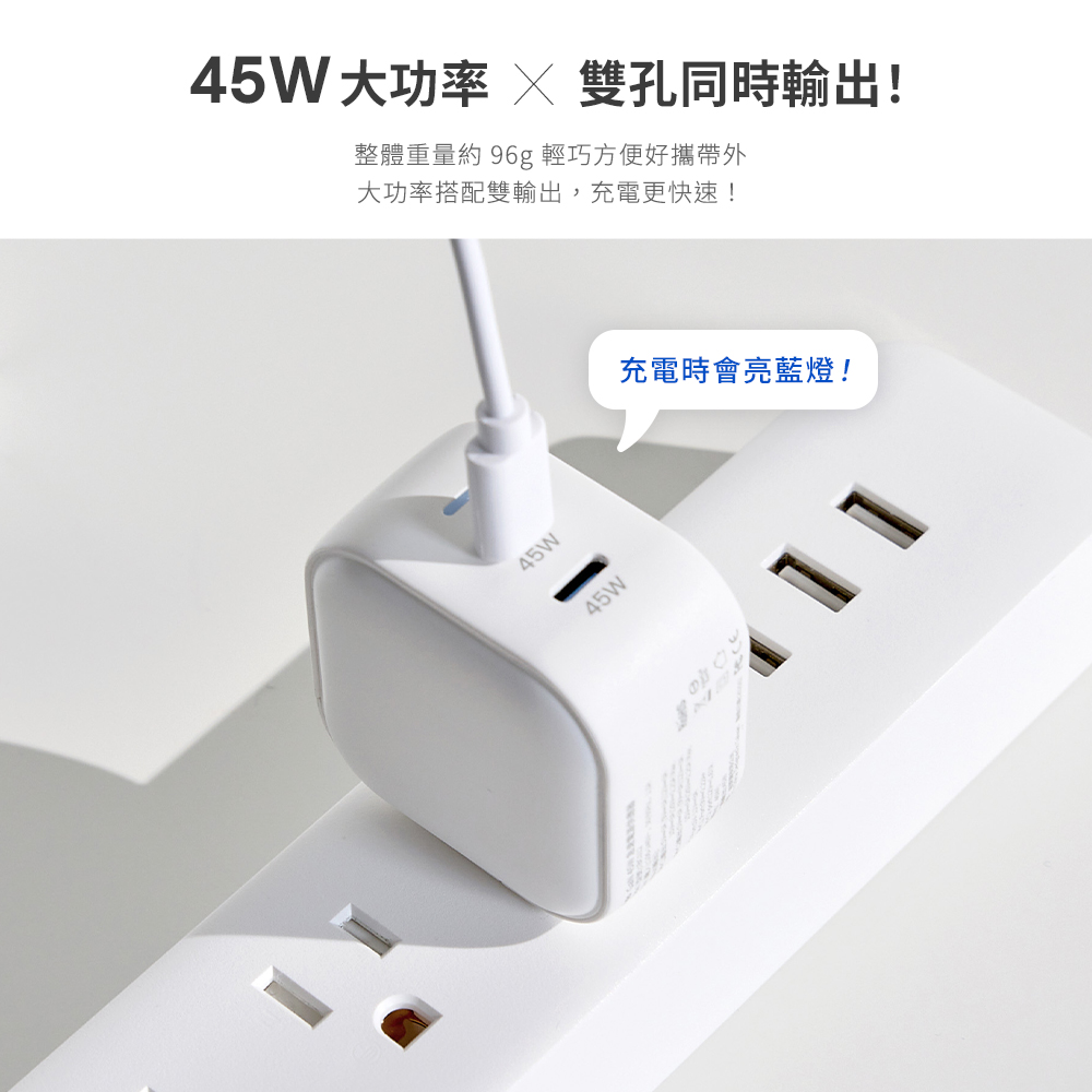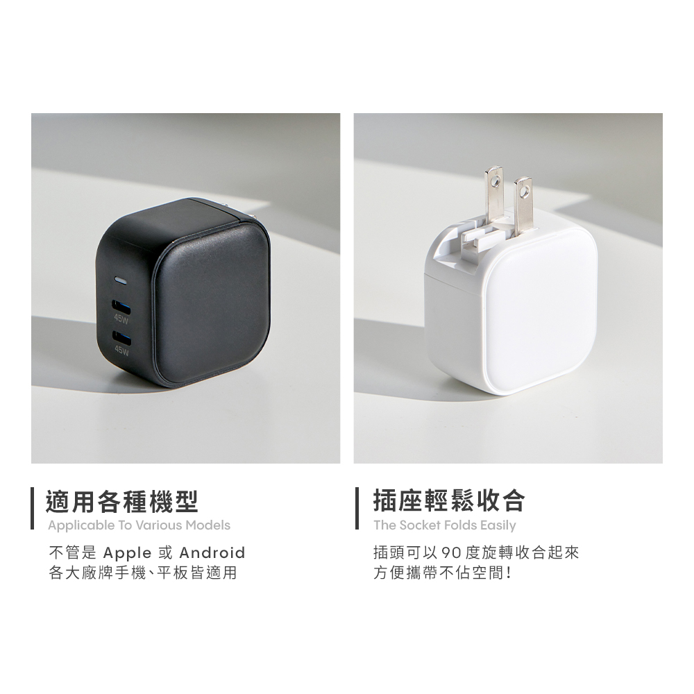 陪覓購物袋GaN 45W Type-C雙孔充電頭