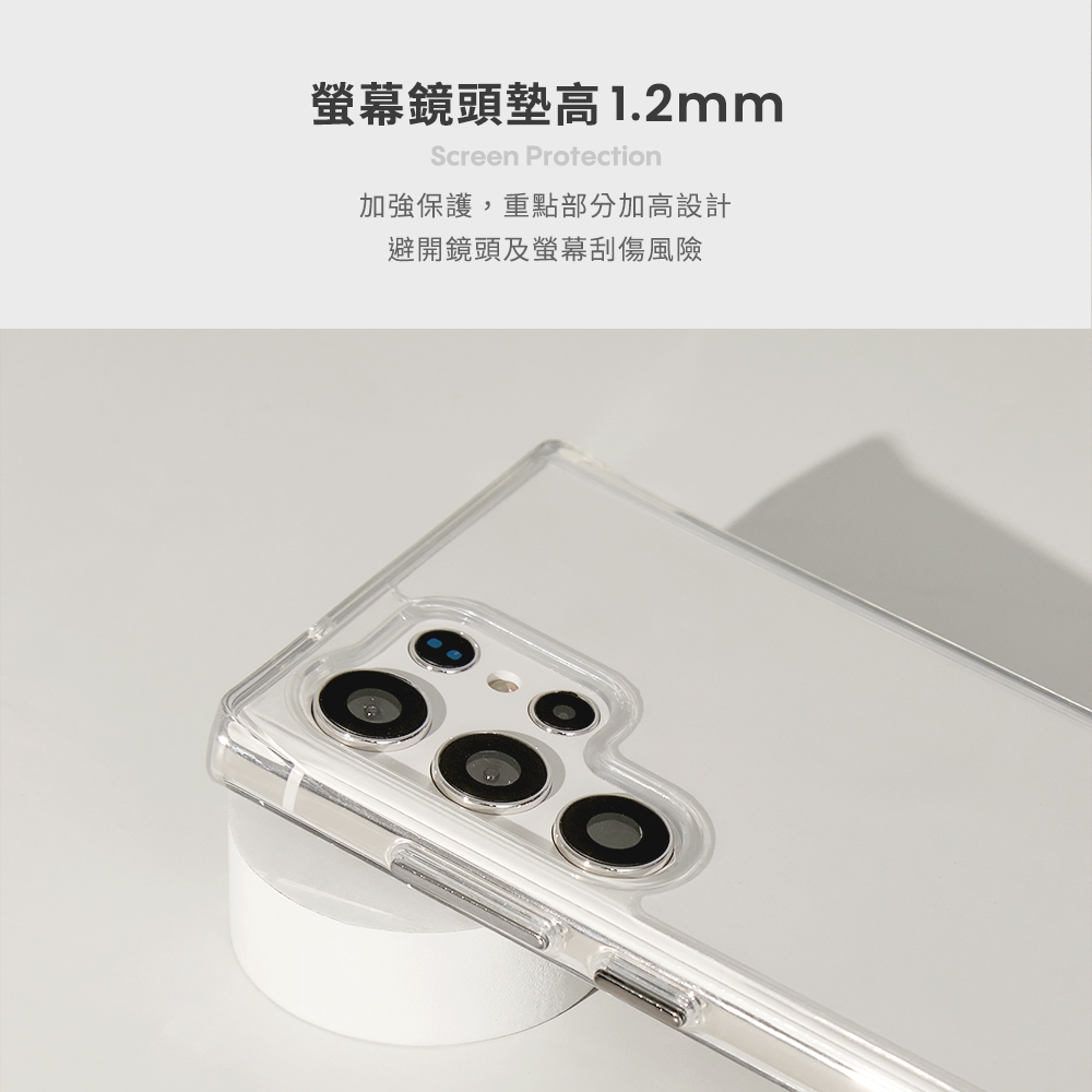 - 全保護|鏡頭架高1.2mm,邊框四角加厚