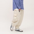 - 採用帶有挺度的布料,展現俐落造型感,搭配仿舊刷破下擺展現粗獷復古風格。正面四口袋設計,其中雙層補強袋靈感源自工裝褲膝部結構,兼具造型感與機能性。