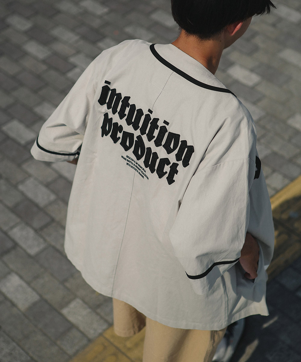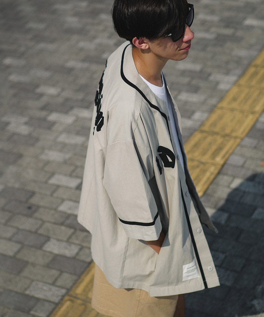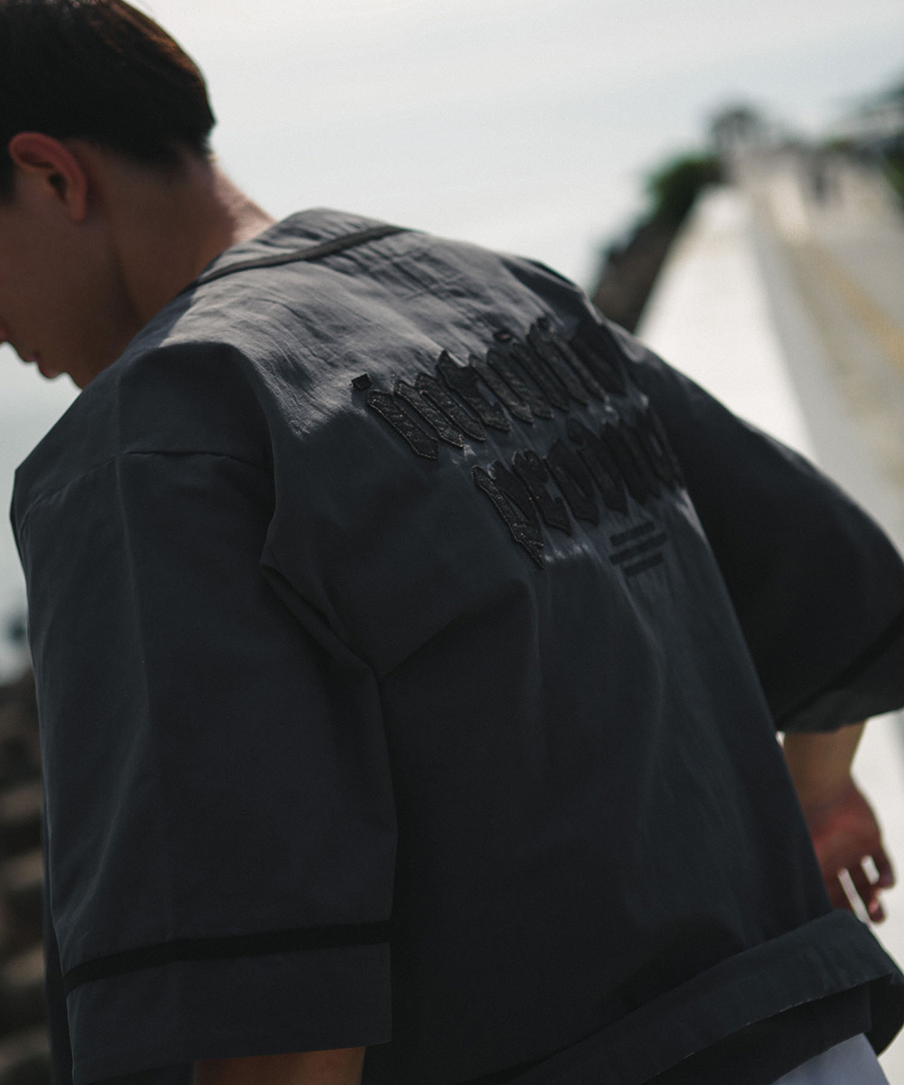 - 本次Gothic Baseball Shirt以此字型做為媒介,傳遞著街頭與生活服飾的文化連結,在工藝的呈現上使用毛氈貼字與帆布布料,相互發揮出陽剛的視覺效果及輕鬆的休閒本質,展現著剛柔並濟的美式風格。