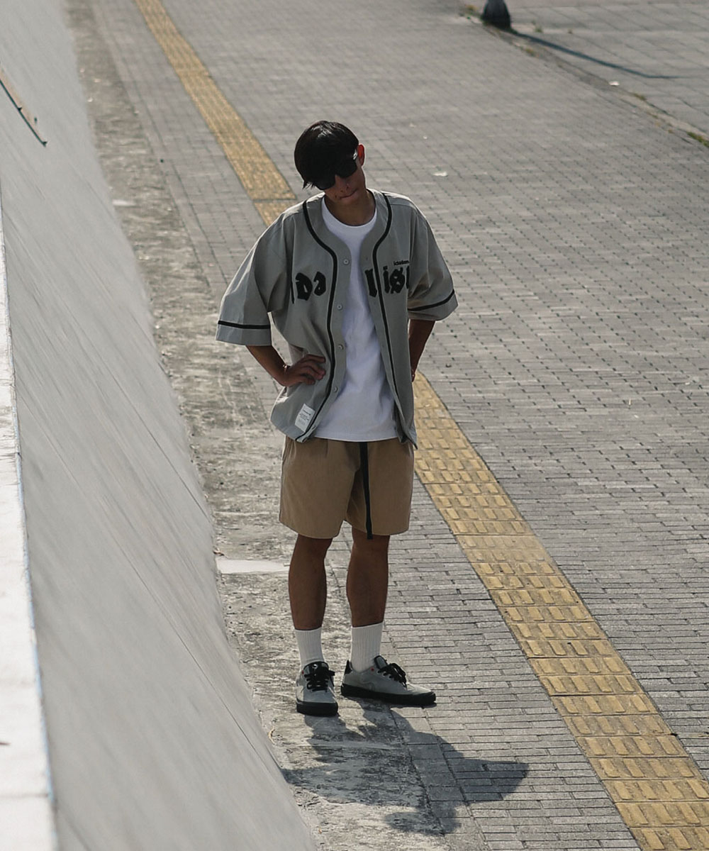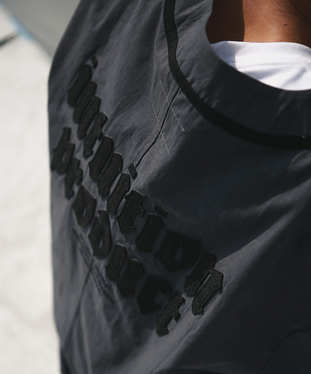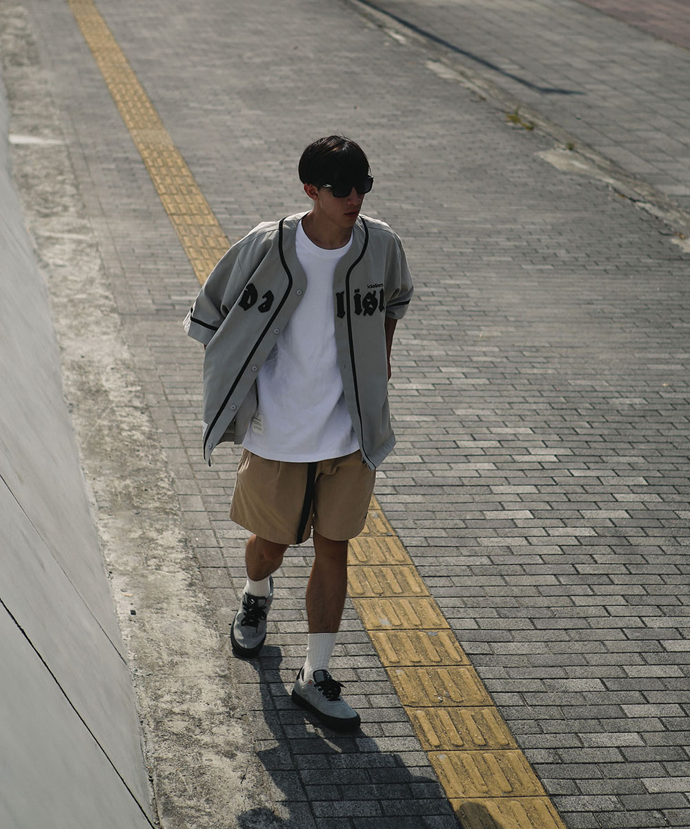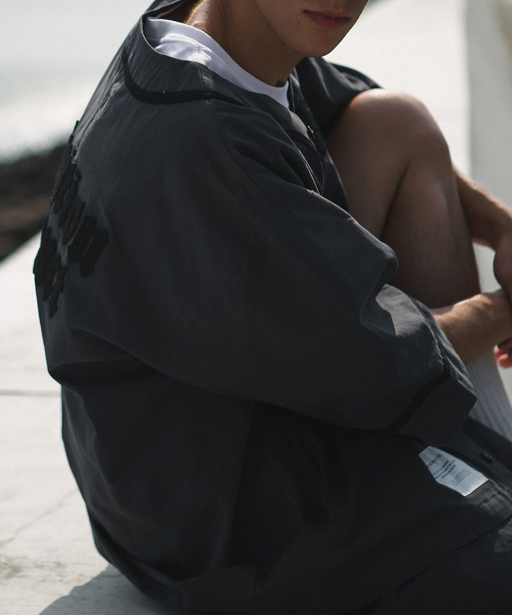 - 本次Gothic Baseball Shirt以此字型做為媒介,傳遞著街頭與生活服飾的文化連結,在工藝的呈現上使用毛氈貼字與帆布布料,相互發揮出陽剛的視覺效果及輕鬆的休閒本質,展現著剛柔並濟的美式風格。