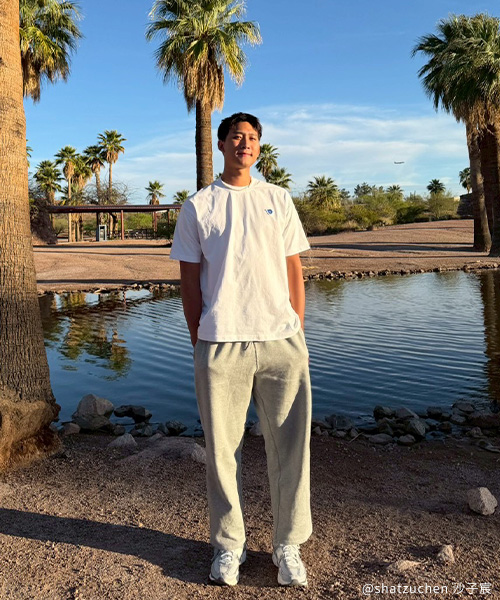 小P社長二代TEE 升級布料兼具棉質親膚與機能涼感,恰到好處的厚薄度應對早晚溫差。寬鬆版型適合層次搭配,搭配闊腿牛仔褲