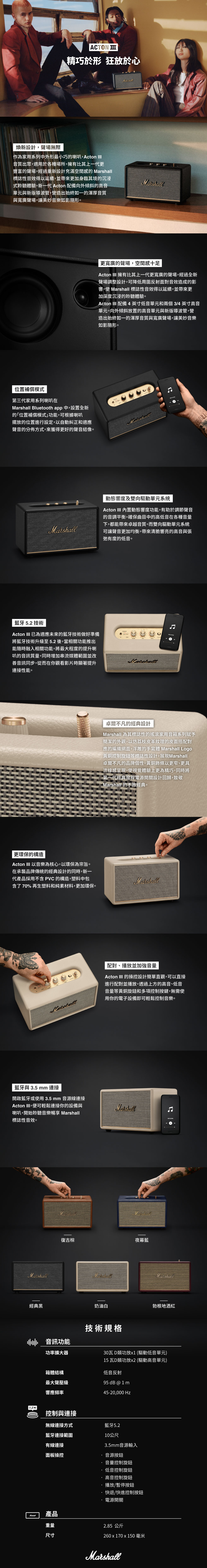 - Acton III 推出勃根地酒紅限定色,以經典的深紅色致敬音樂文化,搭配升級音場與經典設計,帶來優雅而